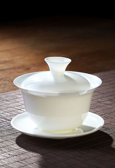 Regular white gaiwan, very thin, which is great for fragile teas such as greens and red teas. Small size, perfect for one person (maybe two). Highly recommend if you're looking for simple thin ceramic gaiwan.
